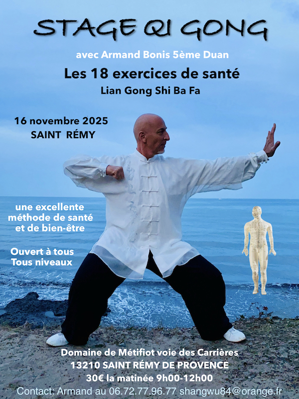 - 29 & 30 novenbre 2025: stage Qi Gong et Tai Ji Quan avec maitre YUAN Hong Hai 9ème Duan à Pertuis (84)