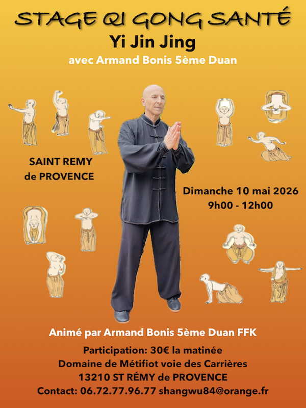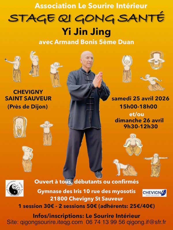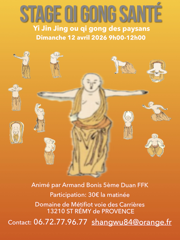 - samedi 9h30 - 12h30: qi gong santé: les exercices des paysans (Yi Jin Jing).